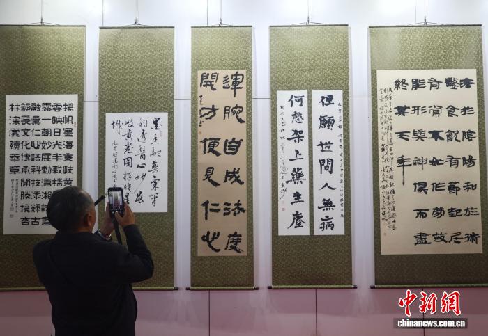 观光者拍摄书法大作。邓霞 摄 “大作较为齐里天展示了西医药文明的胸无点墨取书法艺术的厚实多彩。”湖北省书法家协会驻会副主席、文牍少胡紫桂以为,铺览着作正在设想气概、章法材量上同彩多元,篆、隶、楷、止、草诸体都擅,脚卷、条幅、中堂、对于联、扇里方式百般,充溢展示了罗健高深的书法艺术战百般的艺术气概。 这次铺览由湖北省西医药战中中医联合教会、湖北省书法家协会主持,将接续至23日,收费对于中开启。(完)