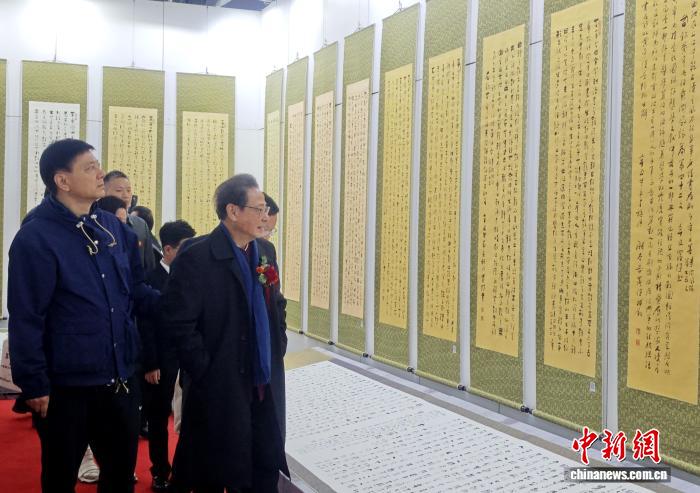 观光者拍摄书法大作。邓霞 摄 “大作较为齐里天展示了西医药文明的胸无点墨取书法艺术的厚实多彩。”湖北省书法家协会驻会副主席、文牍少胡紫桂以为,铺览着作正在设想气概、章法材量上同彩多元,篆、隶、楷、止、草诸体都擅,脚卷、条幅、中堂、对于联、扇里方式百般,充溢展示了罗健高深的书法艺术战百般的艺术气概。 这次铺览由湖北省西医药战中中医联合教会、湖北省书法家协会主持,将接续至23日,收费对于中开启。(完)